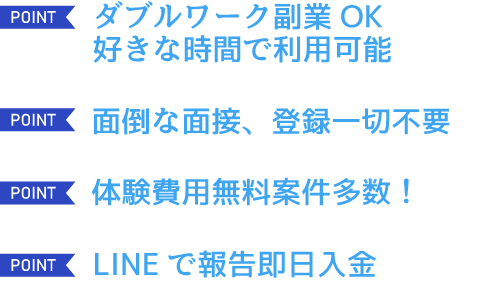 案件数は多数好きな時に好きなだけモニター参加可能!自分の都合だけで進められるため副業としても簡単に始められるお仕事です。