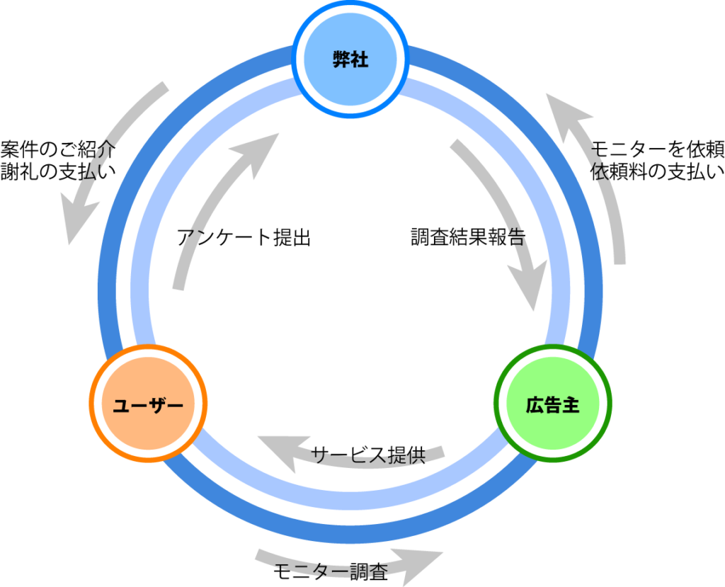 その後意見を基に提携企業様の今後のサービス向上や商品開発、市場分析等のデータとなりその報酬として調査謝礼金報酬を会員様にお支払いしております。
